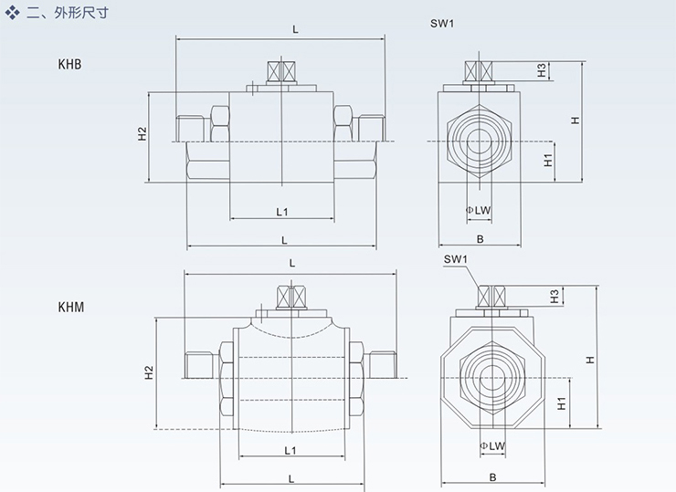 1、系列代号:KHB(BKH)阀块型球阀 KHM(MKH)袖套型球阀
